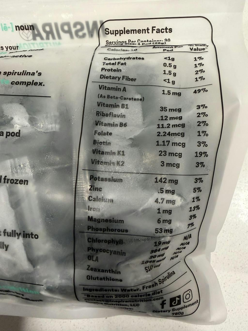 One pod of Inspira Spirulina packs the micronutrient power of three servings of leafy greens.